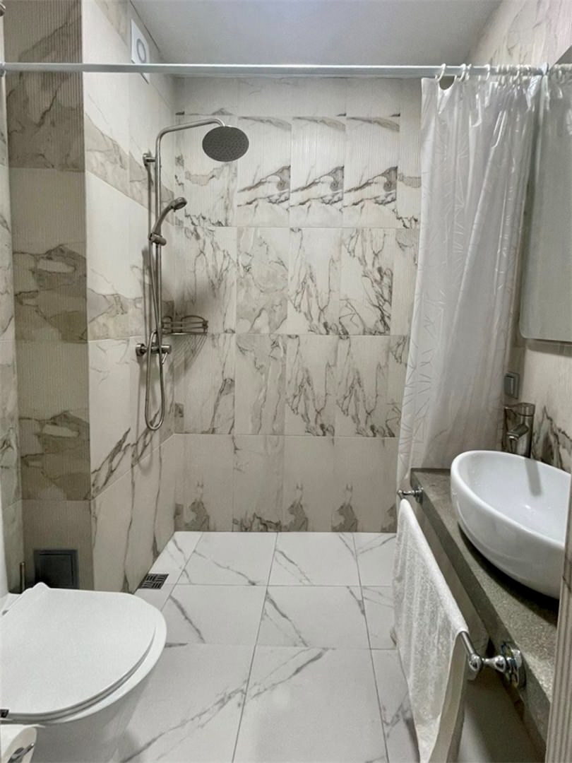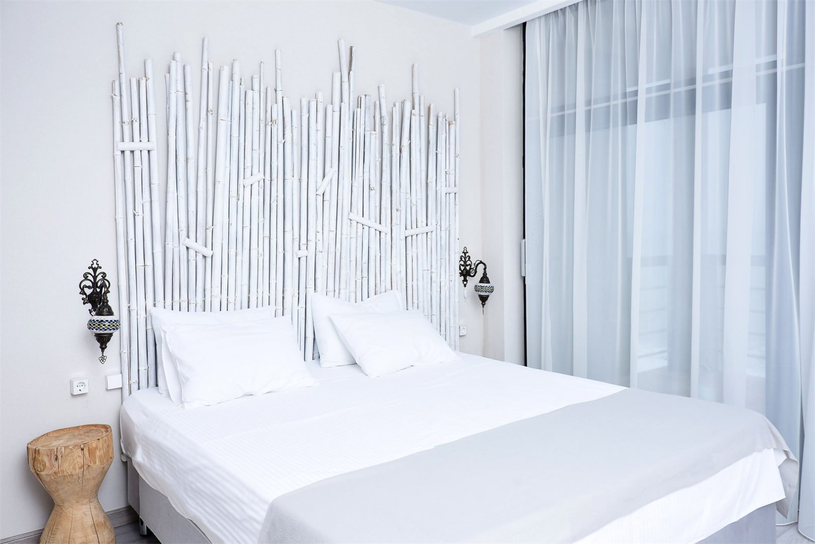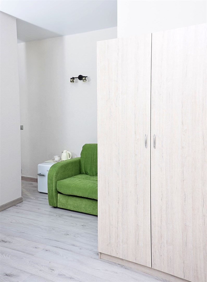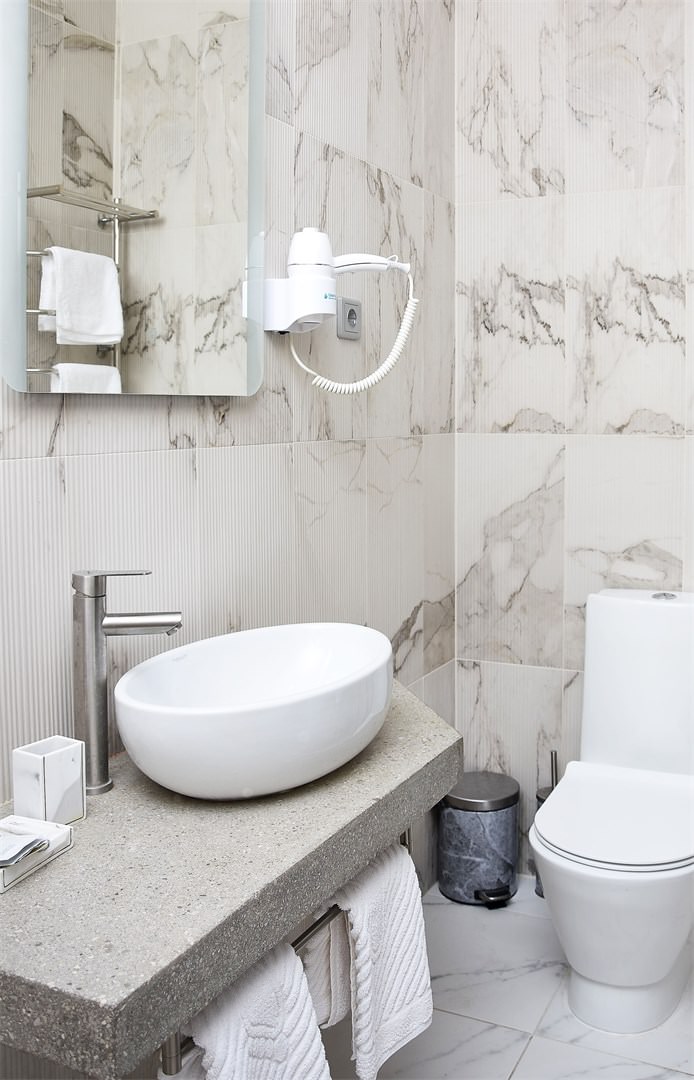 Трехместный номер с двумя раздельными кроватями и диван-кровать, 26 кв. м, максимальная вместимость 3 человека. С выходом на балкон и прямым видом на море. В номере есть все необходимое для проживания LCD-телевизор, кондиционер, бесплатный Wi-Fi, фен, утюг, полотенца, тапочки, одноразовые гигиенические принадлежности, халаты, чайная станция, холодильник. Совмещенный санузел-душевая стойка, гигиенический душ, унитаз.